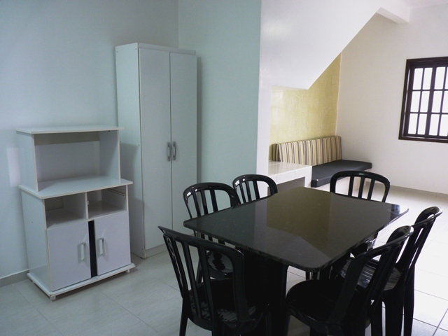 - Sala, copa e cozinha em ambiente integrado com TV 32” LED, pia e mesa de granito, fogão de aço escovado 4 bocas, geladeira biplex e microondas;